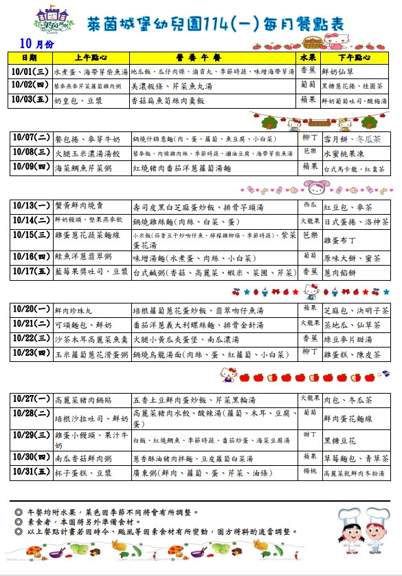 114年10月菜單