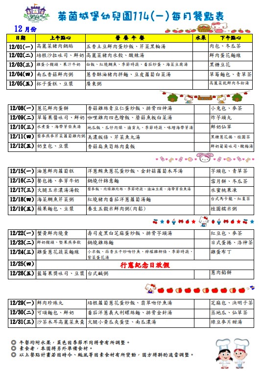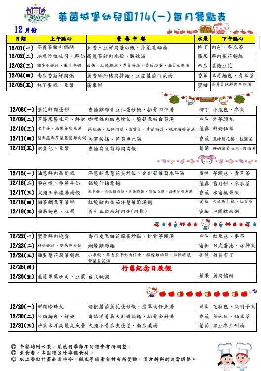 114年12月份菜單