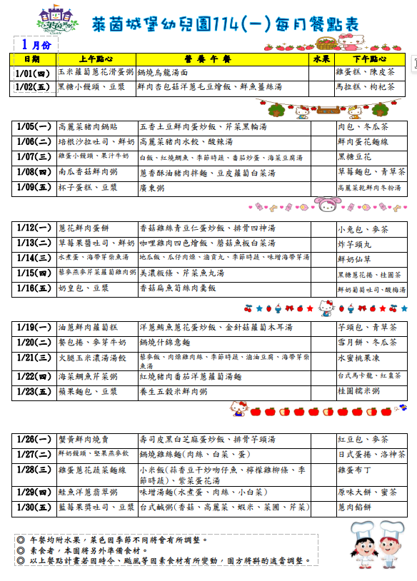 115年1月份菜單