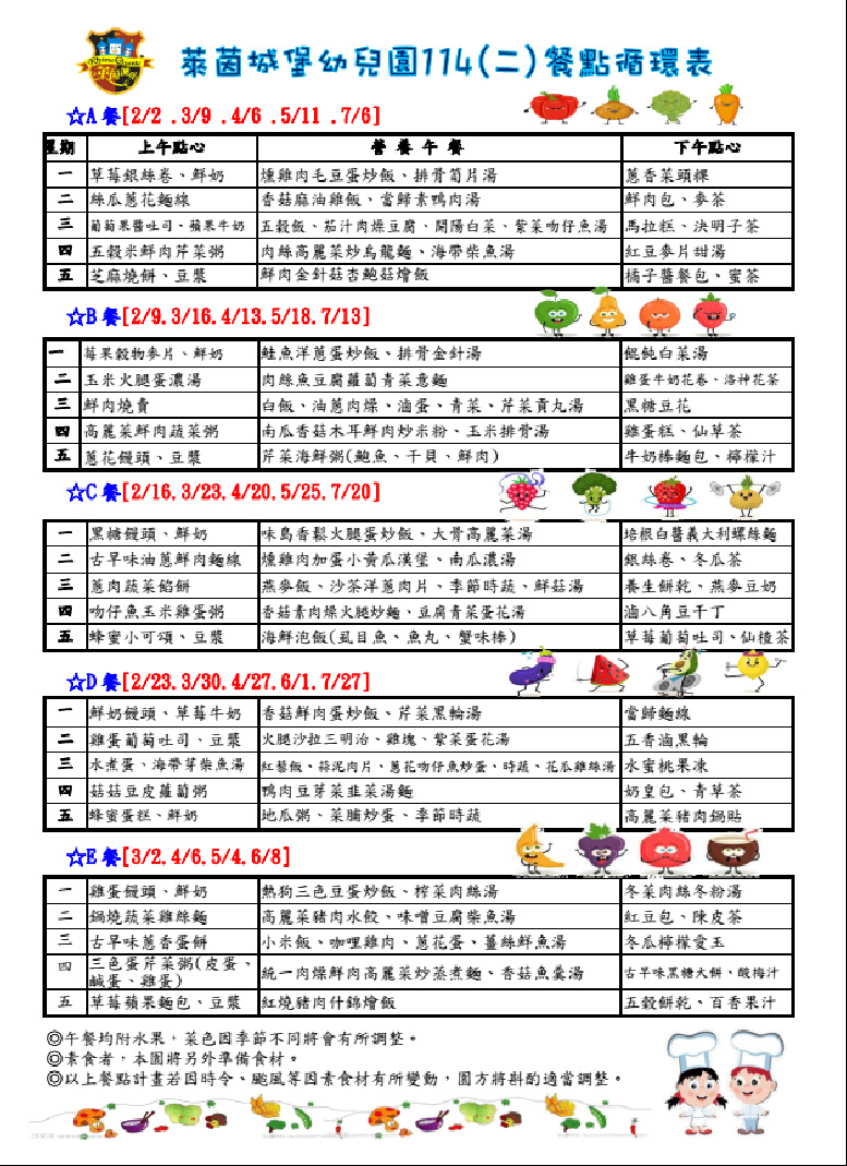114第一學期循環餐點表